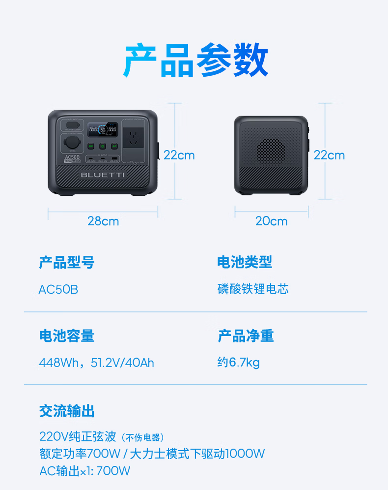 医疗推车 电池 1000W 快充 0.448度电 AC50B 220V 磷酸铁锂